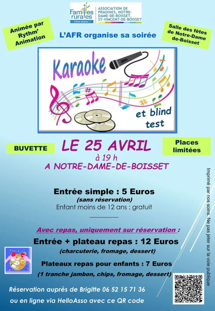 - Samedi 25 avril 2026: karaoké par L’ AFR, Pradines ( 42)